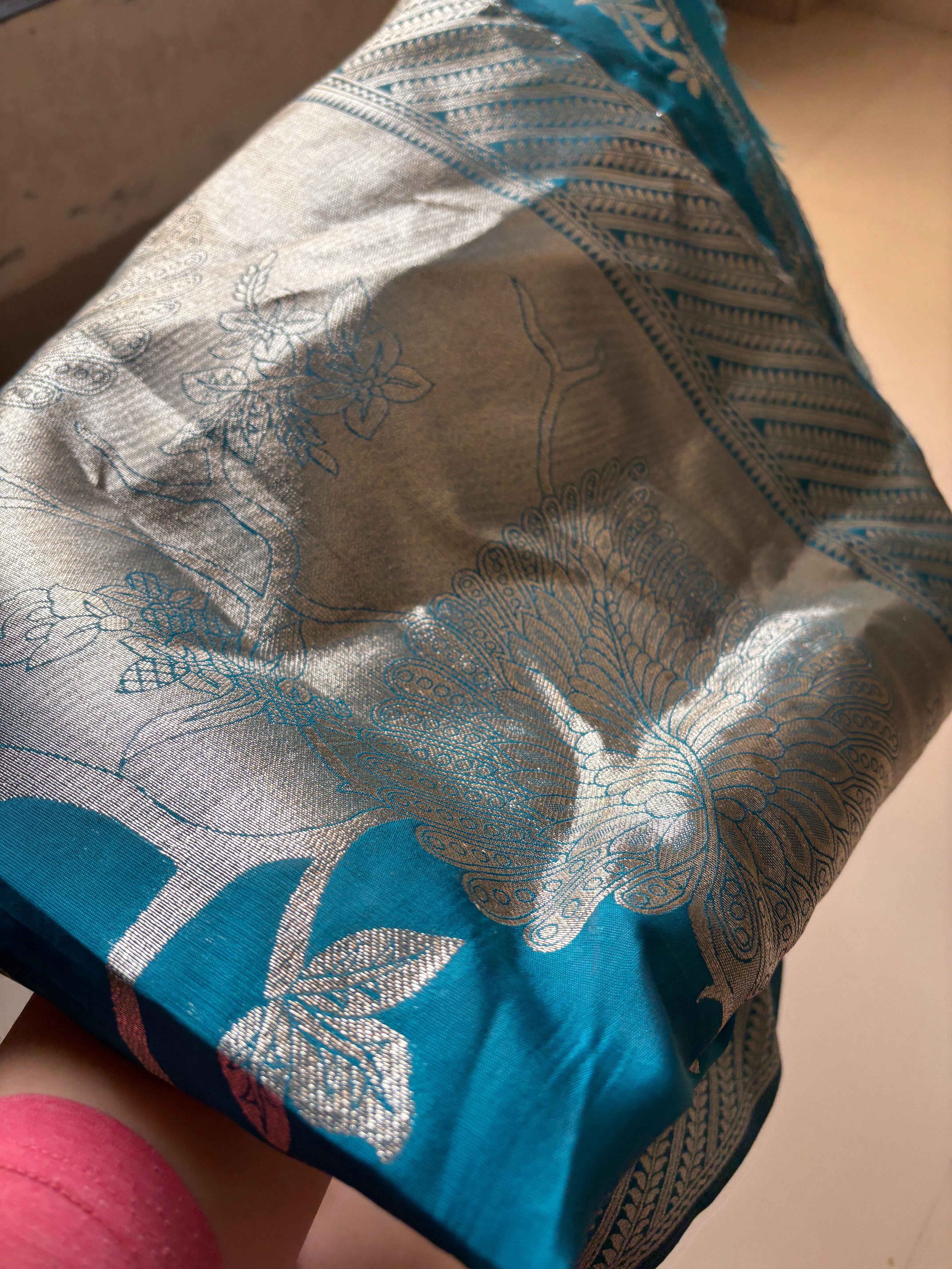 Saree Color : Teal blue with silver zari